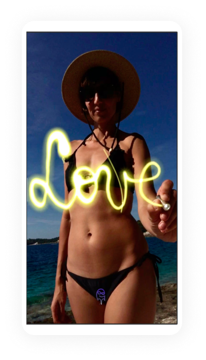 We wanted to find ways to help the users develop more skill and confidence, as well as the ability to gamify the light-drawing experience. We iterated on different ways to show the user brush options, and ultimately the client wanted the brush selector to feel like opening a palette of watercolors. There are 5 different light brush effects, and 9 different colors to choose from.