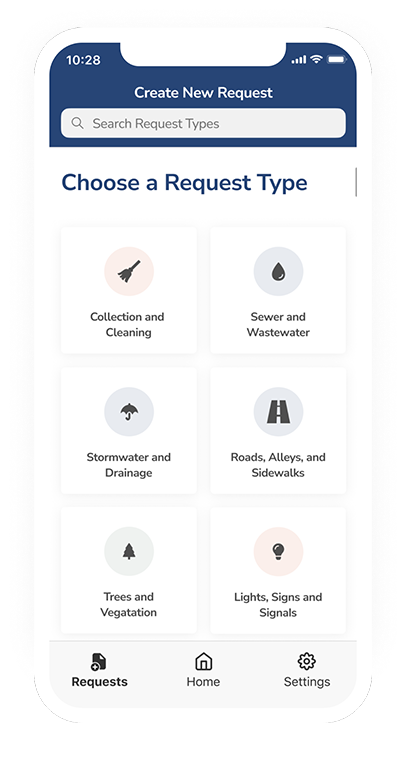 Of course, we also had to keep in mind the needs of the end users of the mobile app. We set up usability testing to get direct feedback from users, and made sure our QA process included testing in real-world scenarios, including areas of the city with reduced cell coverage and places that required the city GIS to match user location with proper addresses. Users need to be able to easily find the service types they are looking for, and complete the request submission process in as few steps as possible without sacrificing informational completeness. The city wanted to encourage account creation, but allow users to also submit anonymously so that they felt comfortable making requests their neighbors might see.